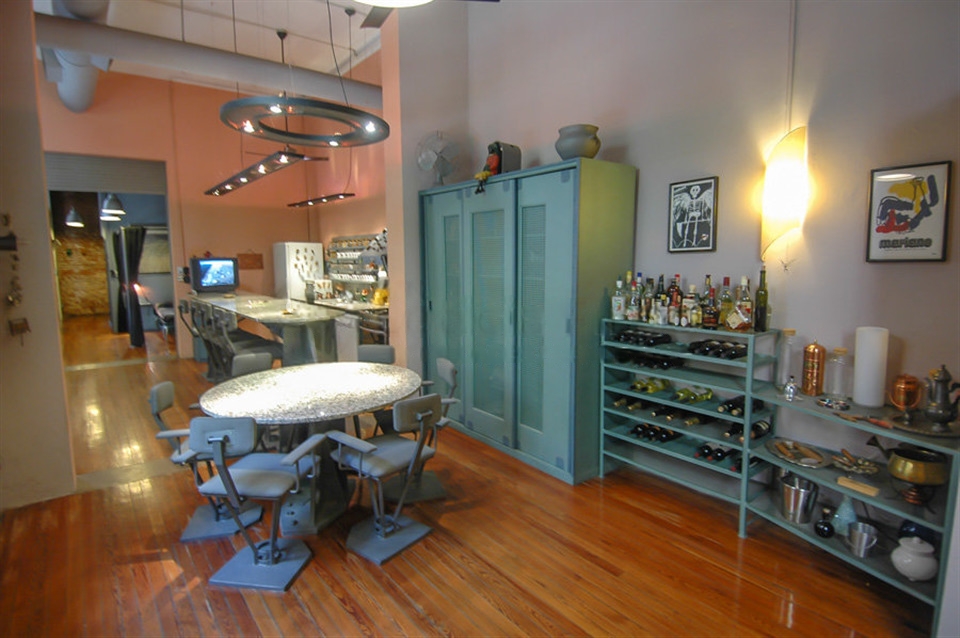 Ésta cocina-comedor, provista de una larga mesa poseur de mármol, seis banquetas de bar artesanalmente construídas en hierro y una gran cocina industrial, garantiza el disfrute de interminables momentos de relax, tanto para los amantes de la buena mesa como para quienes gustan de los ambientes pensados funcionalmente para el confort.