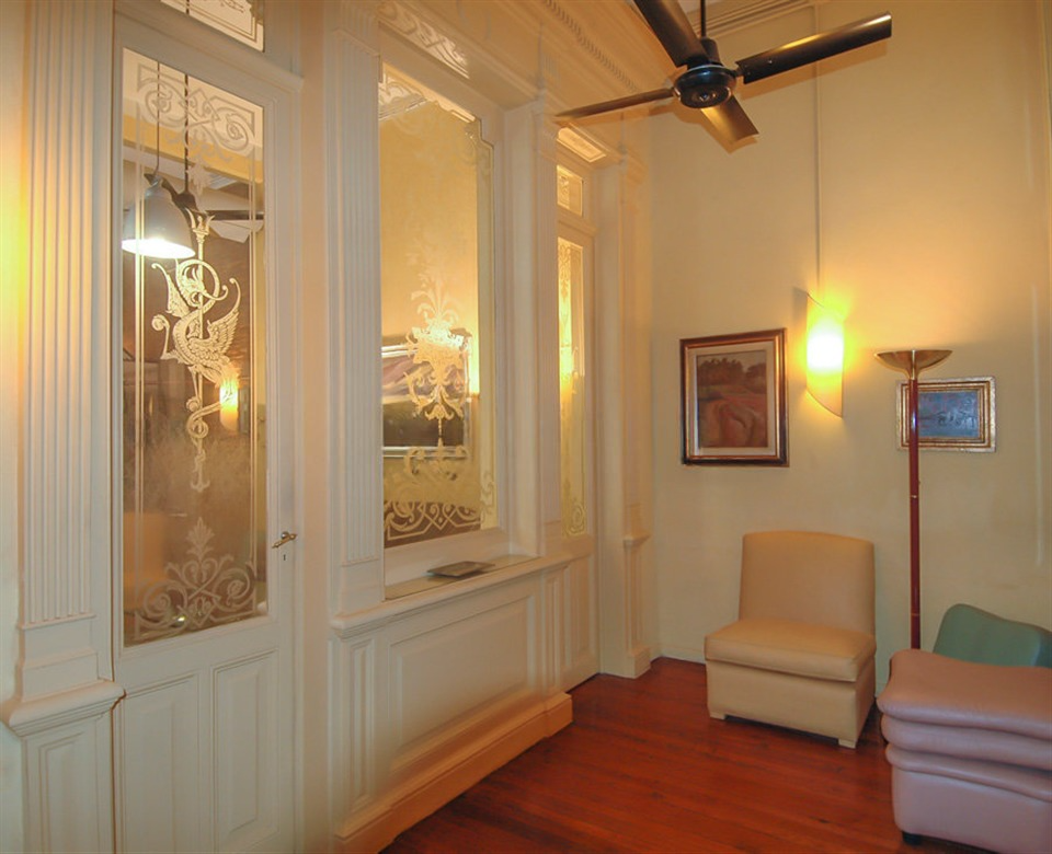 - La construcción data de 1910 y cuenta con detalles constructivos propios del s. XIX (columnas de madera, ventanales con vidrio grabado, pisos de pinotea).